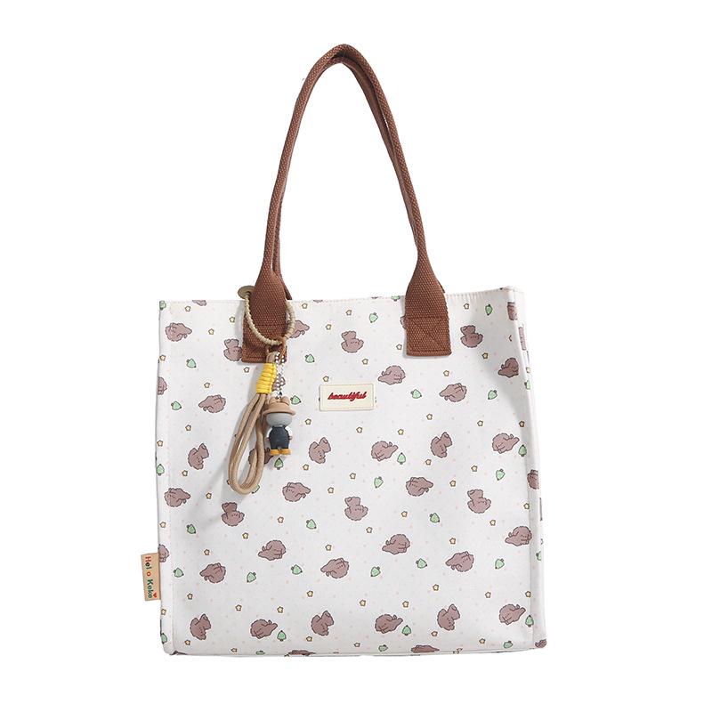 Стильная холщовая сумка-тоут с мультяшным принтом - Просторная, высококлассная наплечная сумка для студентов и тех, кто ездит на работу кофейный