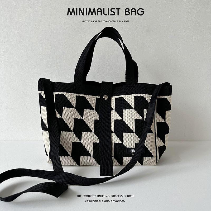 Стильная черно-белая вязаная сумка через плечо с узором «стрелка» – женская большая сумка-тоут и сумка-мессенджер на каждый день, корейский стиль.