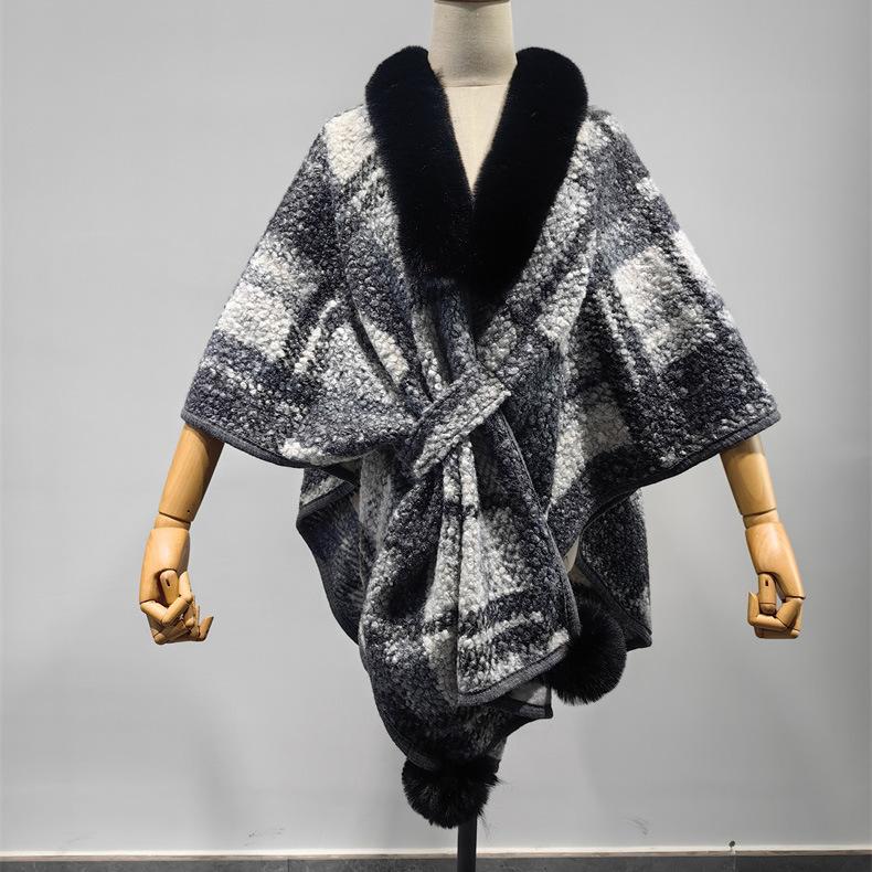 Стильная шаль из искусственного меха с клетчатым принтом для женщин, мягкая удобная теплая модная накидка-пончо большого размера для вечерней вечеринки, офиса, свадьбы чёрный