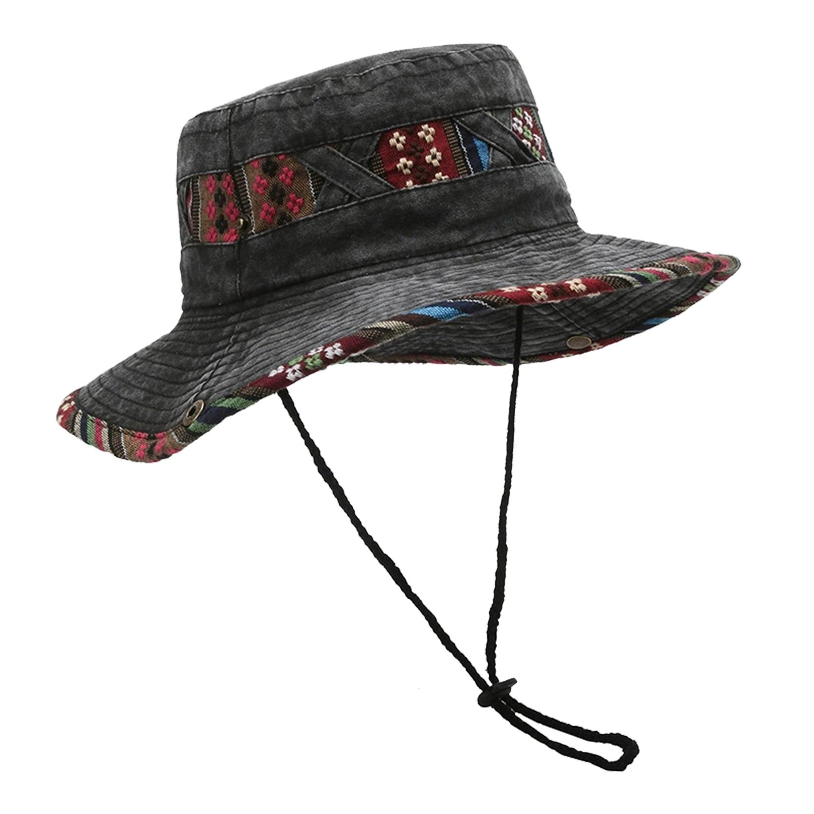 Стильная этническая панама-рыбацкая шляпа с принтом, мягкая хлопковая смесь, дышащий дизайн для уличных фестивалей, путешествий чёрный