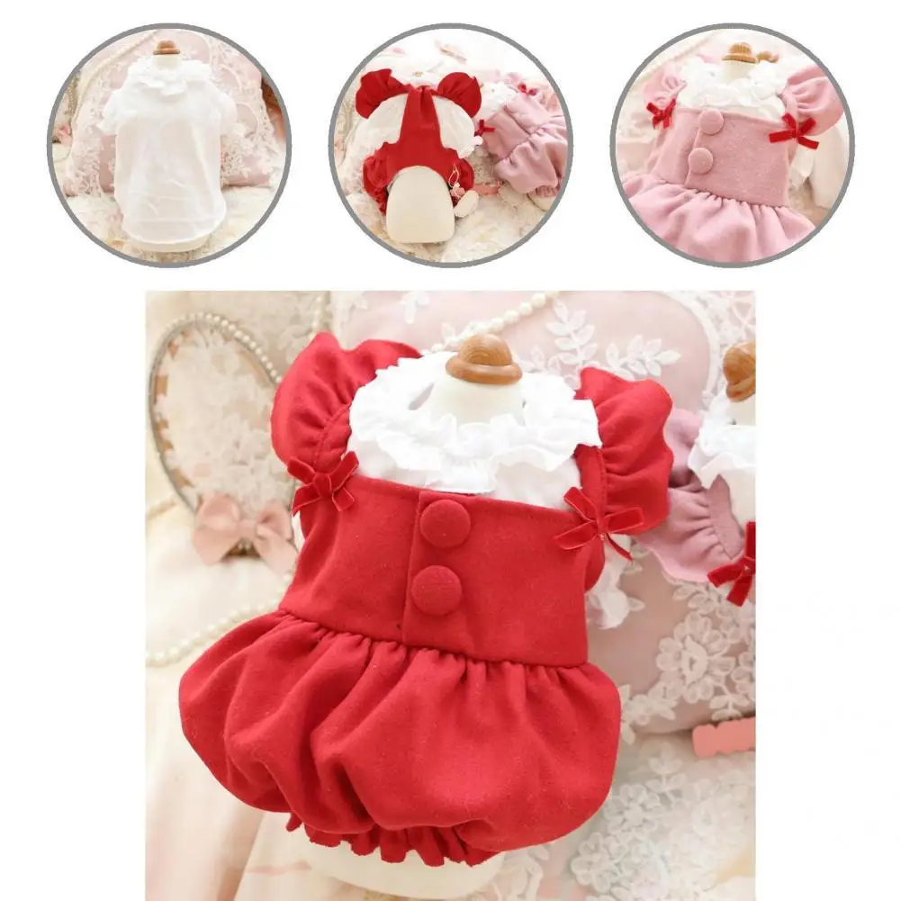 Стильное красное/розовое платье из пузырчатой ткани с рубашкой, 2 шт./компл., 2 цвета на выбор, толстое домашнее платье для питомца