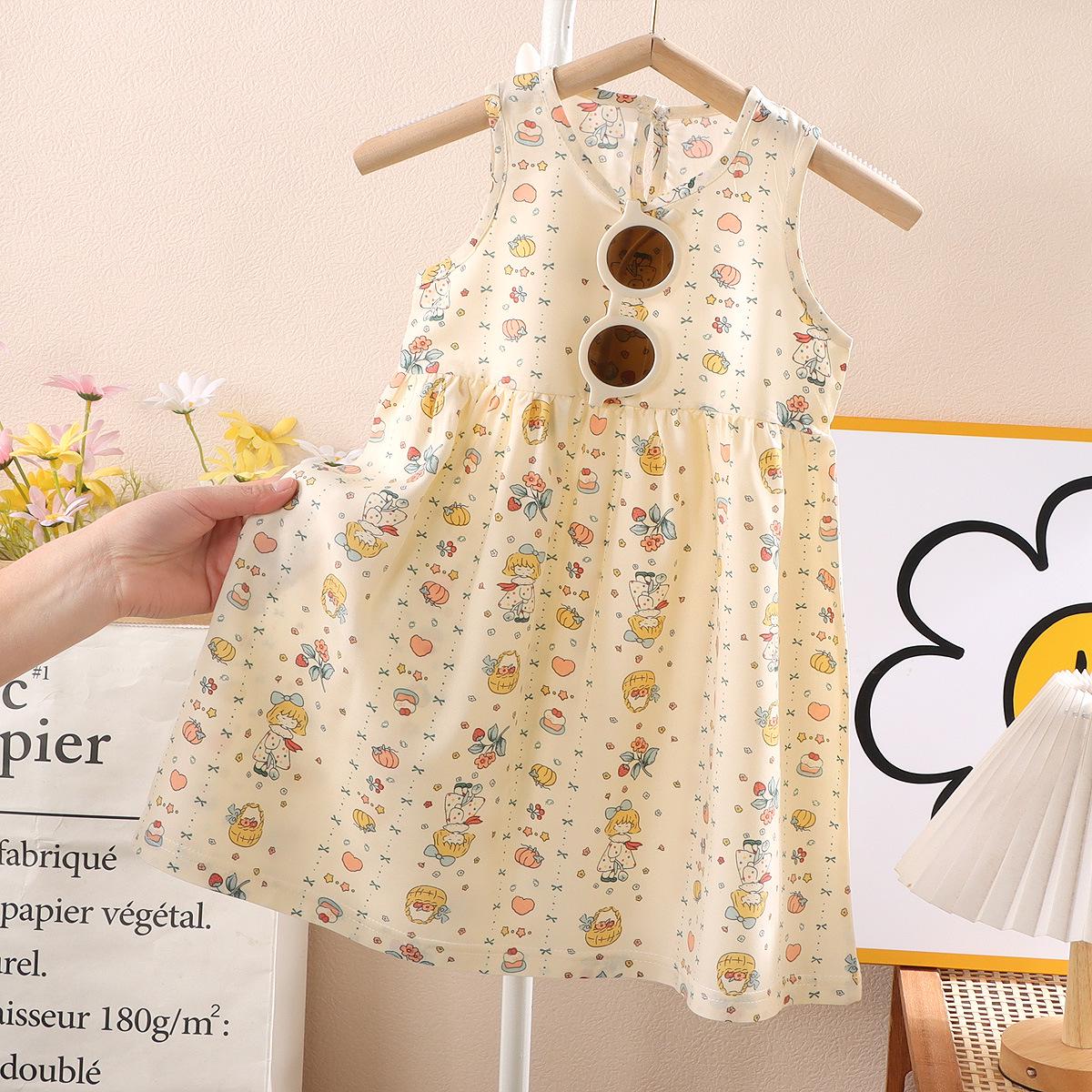 Стильное летнее платье без рукавов с цветочным принтом для девочек - Милая принцессная ночная сорочка 90cm