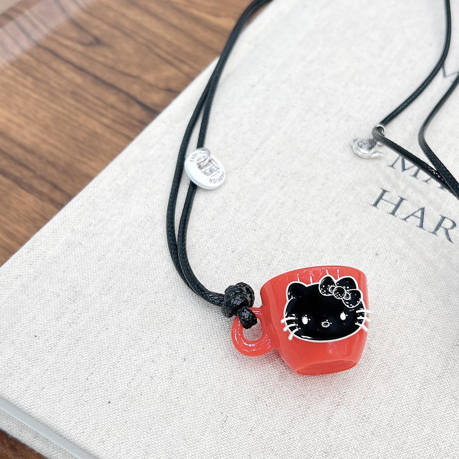 Стильное ожерелье с чашкой воды в виде мультяшного кота: Уникальные, регулируемые и милые аксессуары для женщин Cup KT Cat Rope Necklace красный