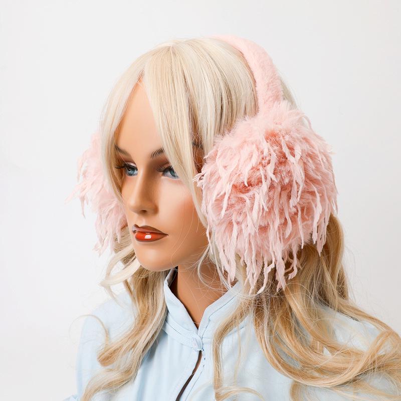 Стильные складные наушники с перьевыми кисточками: Легкие, теплые однотонные наушники для защиты ушей на осень и зиму