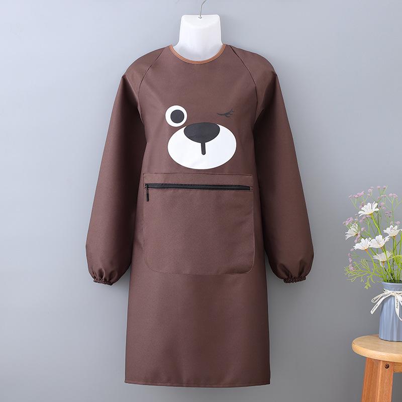 Стильный водонепроницаемый фартук с длинным рукавом и большим карманом на молнии - Двусторонний и устойчивый к пятнам кофейный