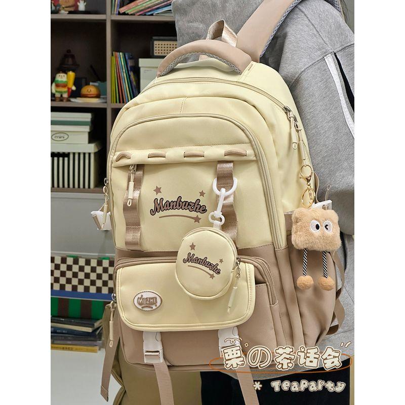 Стильный милый рюкзак школьный рюкзак для учениц средней школы, старшеклассников, мальчиков, большой вместимости, для начальной школы, с защитой позвоночника, легкий рюкзак Yellow Brown Long Legs Biscuits