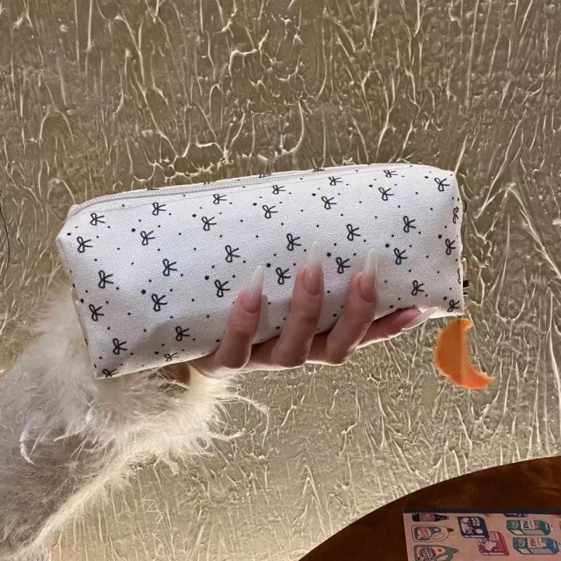 Стильный черный пенал с бантом: Милая косметичка и пенал большой вместимости для студентов