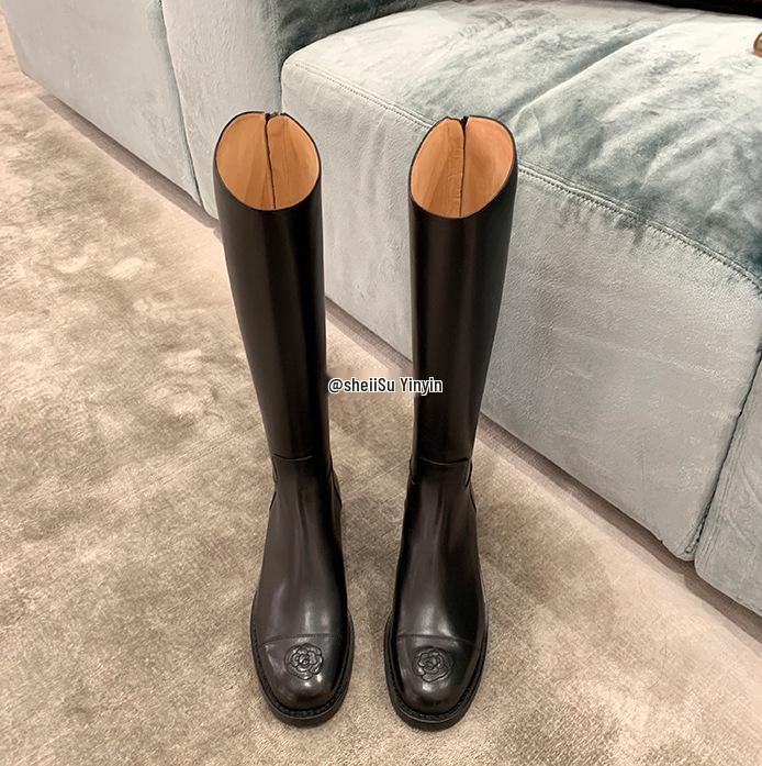 Стиль Су Иньинь: Зимние вышитые кожаные сапоги-ботфорты до колена на молнии с камелией для женщин 37
