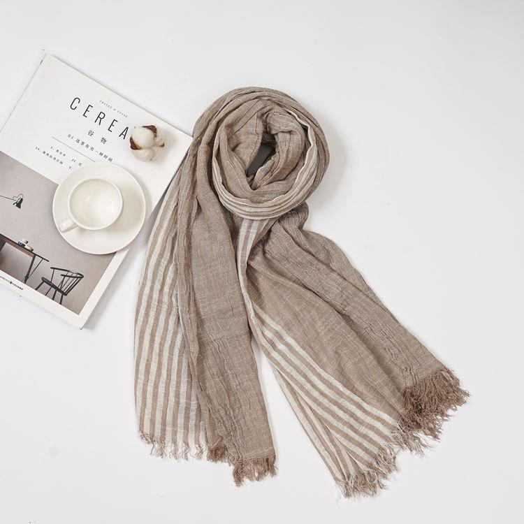Стиль ретро, полосатый хлопково-льняной шарф, простая шаль