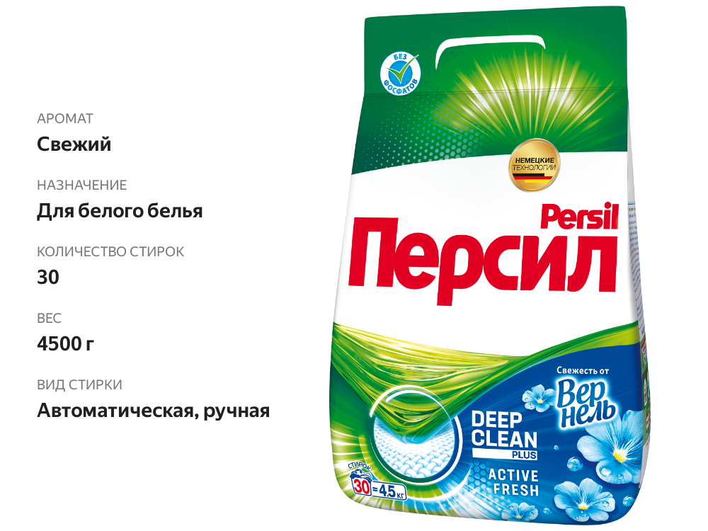 Стиральный порошок для белого белья Persil Свежесть от Vernel автомат 4500 г