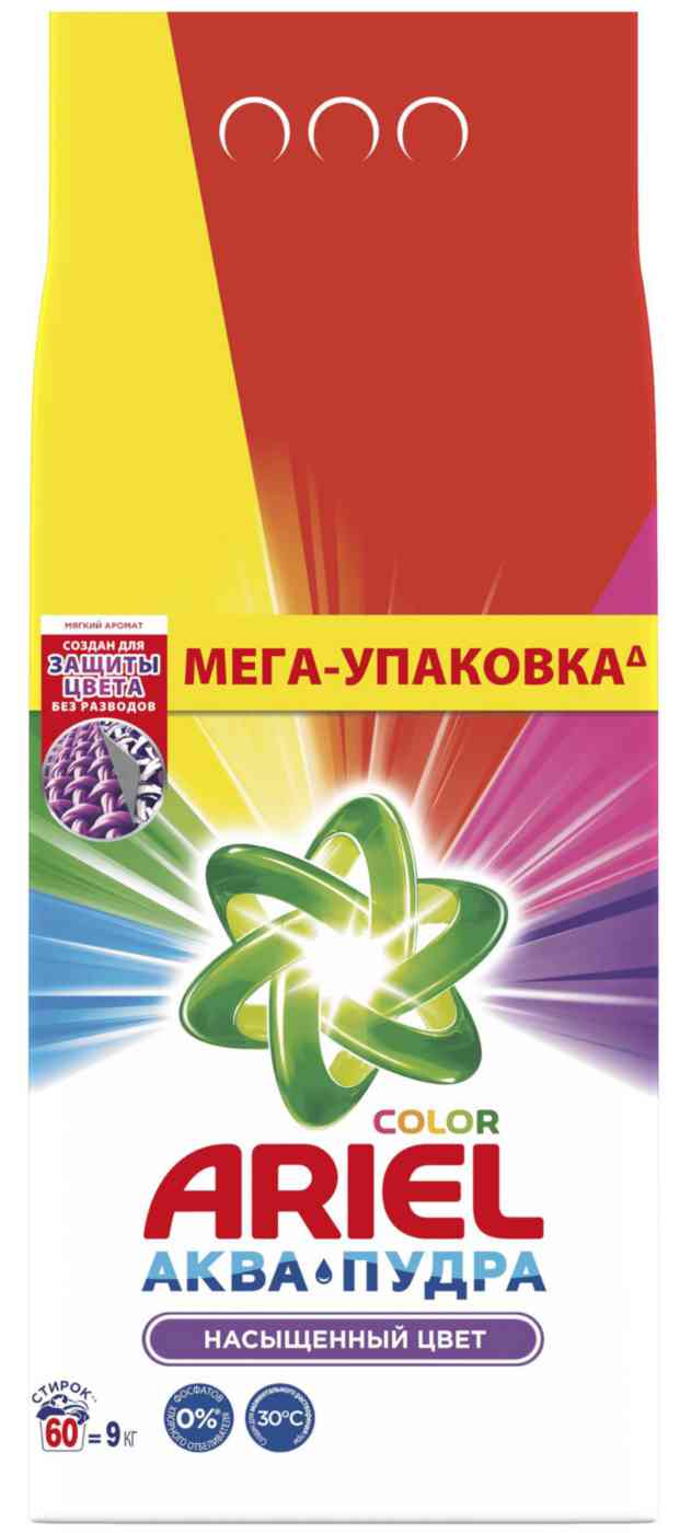 Безупречная чистота и приятный аромат одежды дарят прекрасное настроение и уверенность в себе, поэтому очень важно уделять должное внимание стирке. Именно для этого мы создали стиральный порошок Ariel Аквапудра для цветного белья. Ariel Аквапудра растворяется, едва коснувшись воды, и моментально активируется: удаляет трудновыводимые пятна, глубоко проникая в структуру волокон, и не даёт загрязнениям въедаться. Порошок устраняет загрязнения, вызывающие неприятные запахи, такие как запах пота и тела, придавая одежде приятный аромат и сияющую чистоту даже на воротничках и манжетах рубашек. Предпочитаете более мягкие ароматы? Обратите внимание на коллекцию Ariel Масло Ши.Преимущества Ariel Аквапудра:- Безупречное удаление пятен с первой стирки даже при 30 °C.- Порошок быстро растворяется, не оставляя следов на одежде.- Сохраняет яркость цветных вещей.- Помогает справиться с застарелыми пятнами.- Не даёт грязи и пятнам въедаться в структуру волокон.- Ariel Color также предлагается в форме геля для стирки и капсул Всё-в-1.Безопасность превыше всего! Мы не используем фосфаты или хлор.Для большего эффекта используйте кондиционер для белья Lenor: он защищает одежду от появления катышков, потери формы и потери цвета. Теперь ваши любимые вещи прослужат вам ещё дольше.