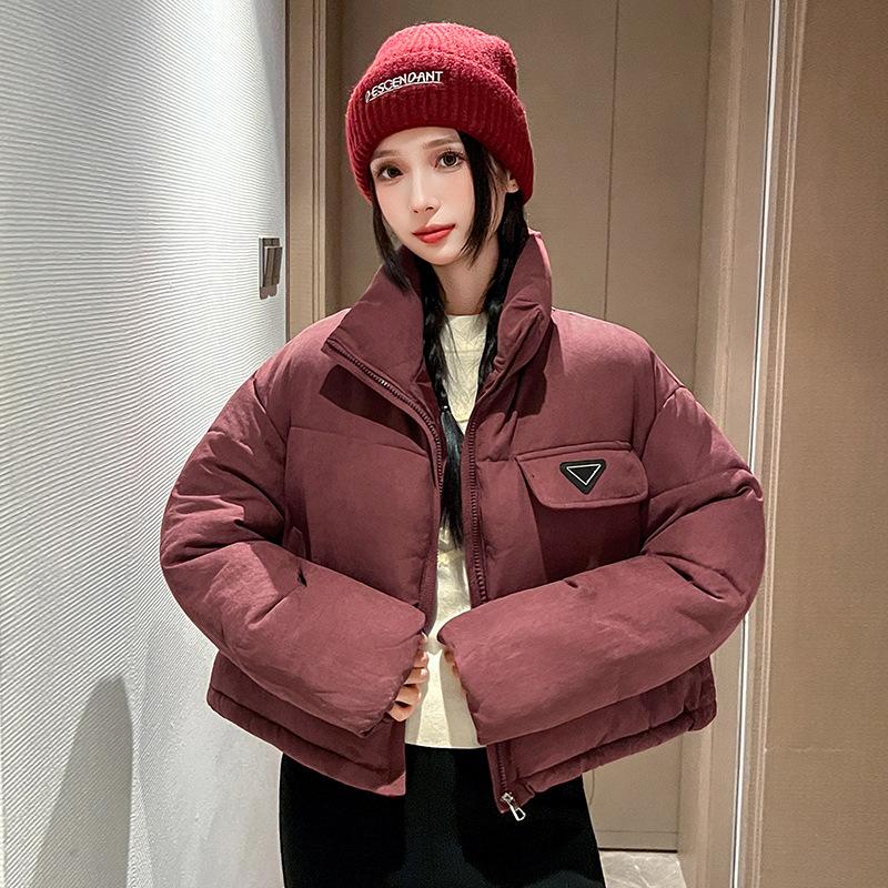 Стойка-воротник Пуховая хлопковая одежда Женские короткие модели Новая осень и зима Маленькая хлопковая куртка Топ Женская одежда XL темно-коричневого