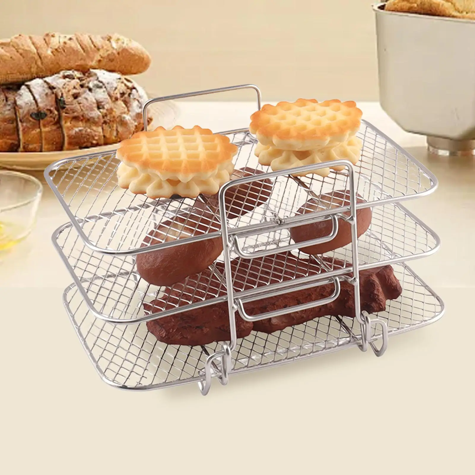 Стойка для фритюрницы Стойка для гриля Нержавеющая сталь Штабелируемая многофункциональная стойка для приготовления пищи Решалка для тостов Корзина Лоток Аксессуары для фритюрницы