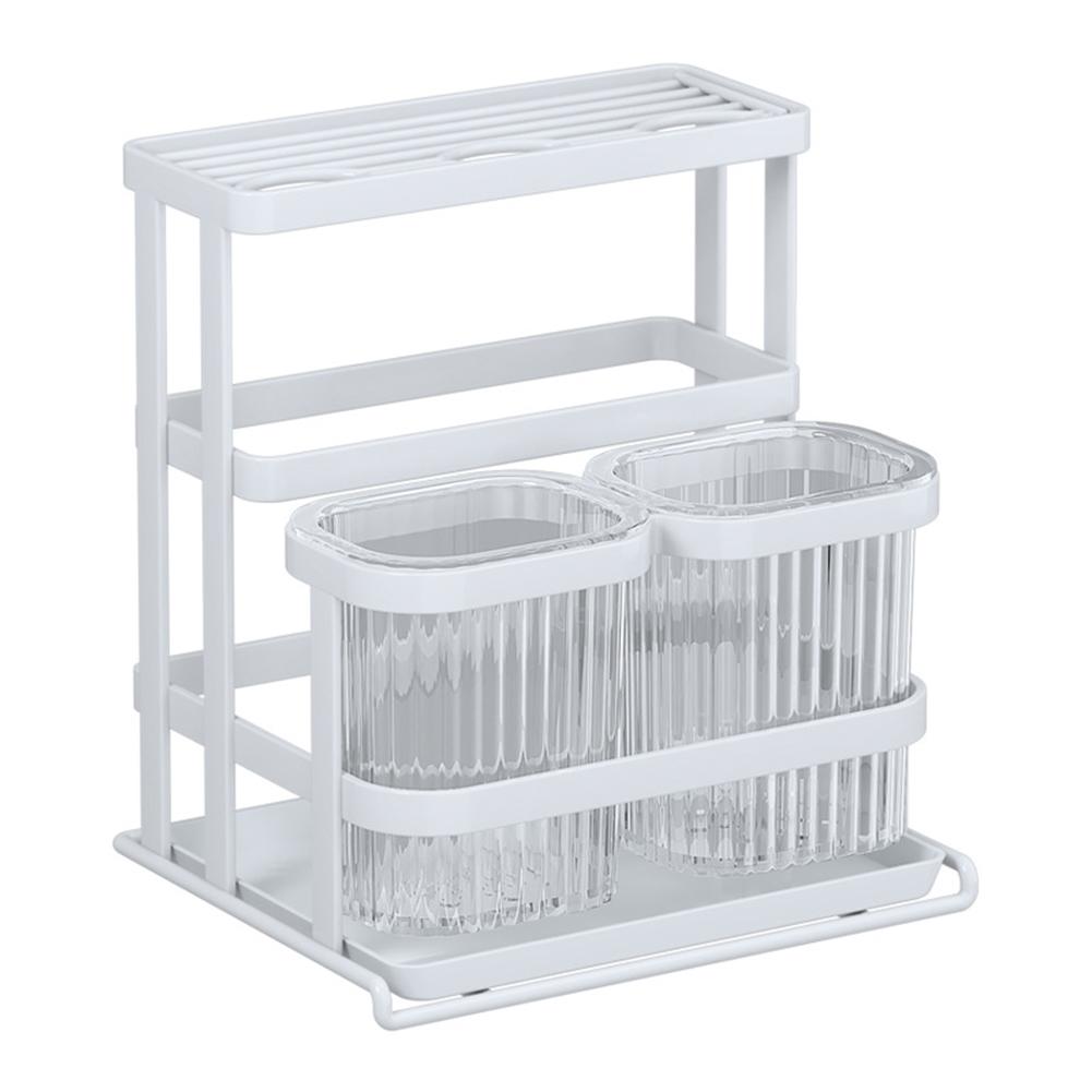 Стойка для хранения кухонных столовых приборов Полая конструкция Прочные материалы Вилки Ножи Ложки Органайзер Не наклоняется и не трясется белый