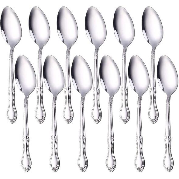 Столовая вилка Салатные Десертные вилки Узор Розы 12 штук, КУПИ&ИСПОЛЬЗУЙ Серебристая Нержавеющая сталь 7,3 дюйма Столовые приборы 12 PCS 7.3-Inch Dinner Fo серебряный