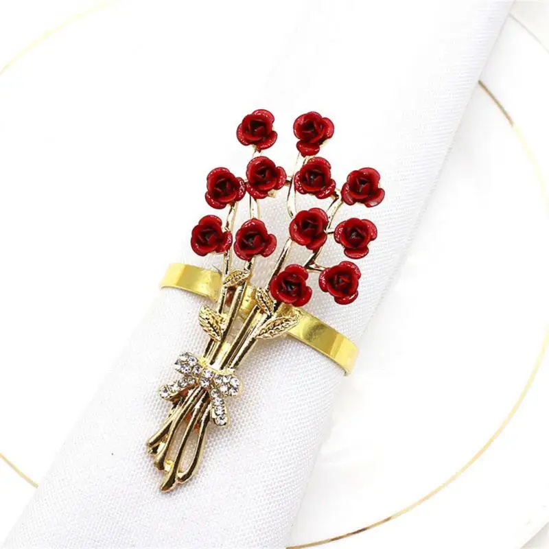 Столовая посуда для отеля, пряжка для салфеток на День святого Валентина, кольцо из металлического сплава с розовым цветком красного цвета, ...