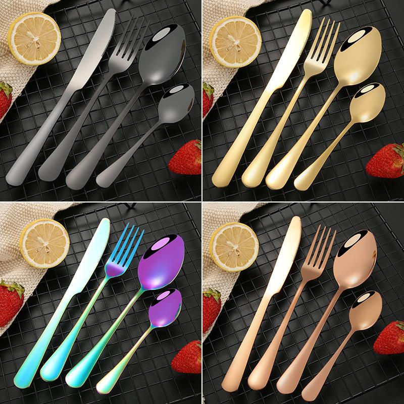 Столовые приборы из нержавеющей стали, нож, вилка и ложка, утолщенный набор из четырех предметов для домашнего отеля, западной еды