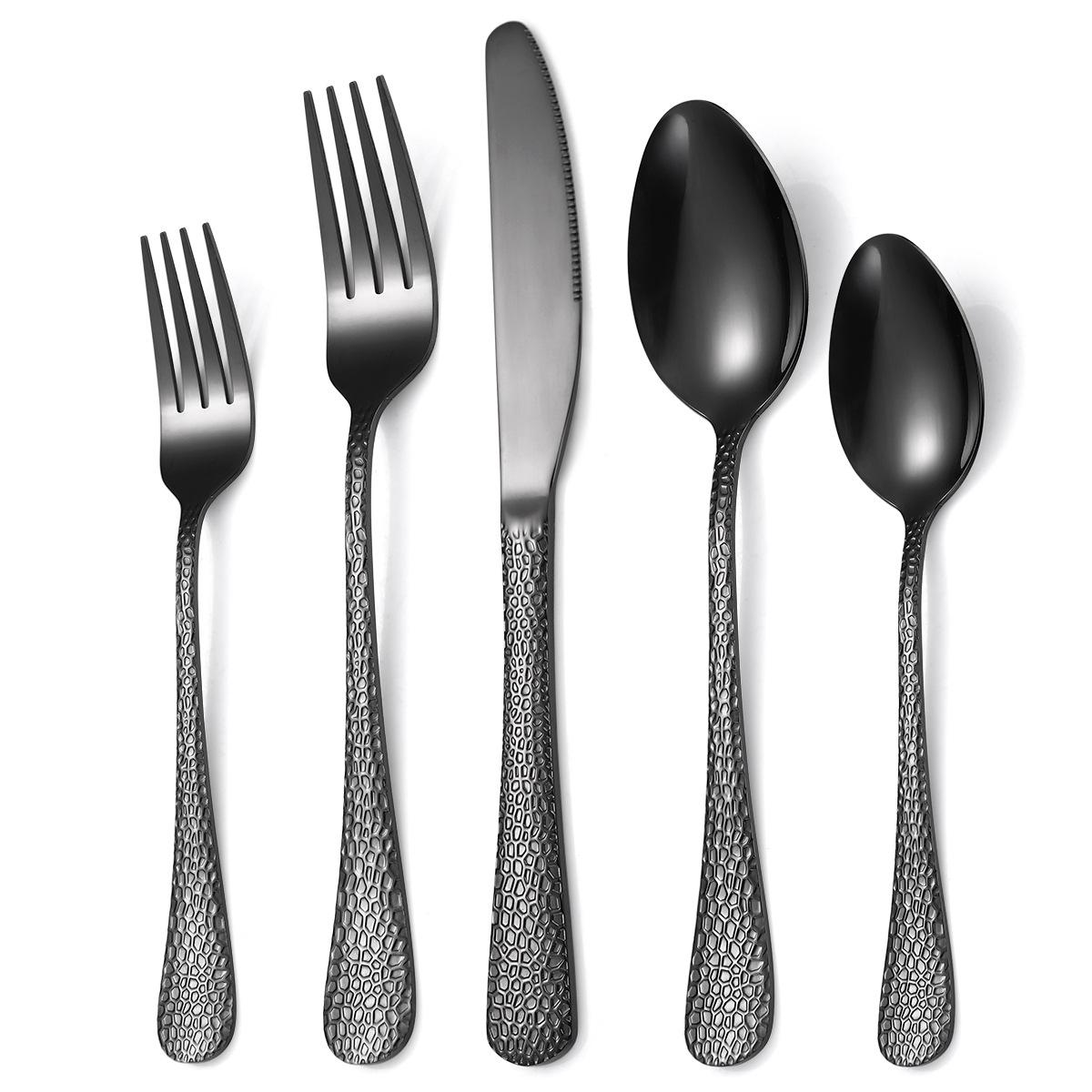 Столовые приборы с ручкой из змеиной кожи и узором «молоток» из пяти предметов, набор креативных ножей для стейков в западном стиле, вилок, ложек, золотых ножей и вилок из нержавеющей стали чёрный