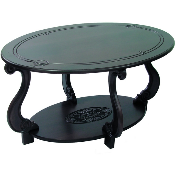 Стол журнальный с полкой Овация (М) темно-коричневый Mebelik (овальная столешница, 4 ножки), 000234