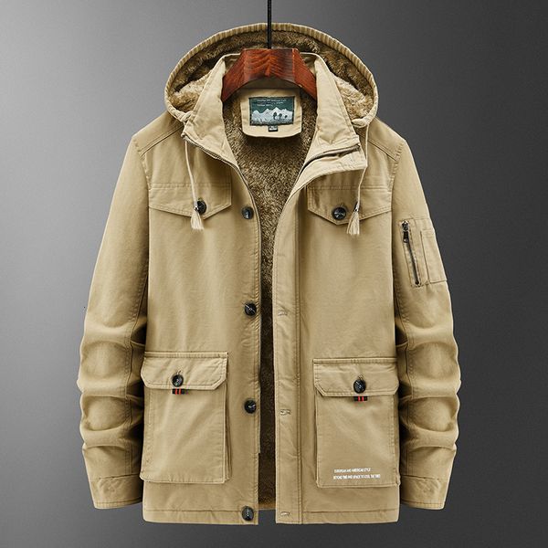 men's jackets winter men plush insulation thick washed cotton jacket medium length pure youth large windbreake outwear overcoat clothin, Black;brown