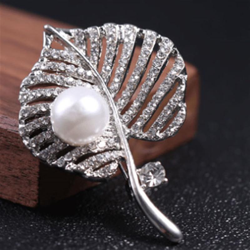 Стразы Высококачественный жемчуг Персонализированная креативная полая листовая брошь Аксессуары для одежды Корсаж