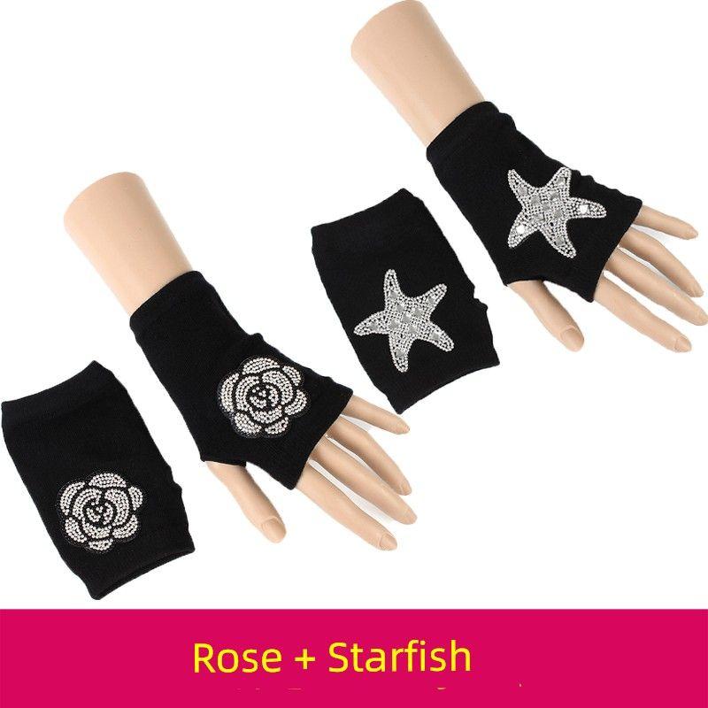 Студентка Пишет Вязание Половина Пальца Короткие Женские Осенне-Зимние Корейские Ромбовидные Теплые Шерстяные Перчатки без Пальцев для Велоспорта Rose + starfish All yards