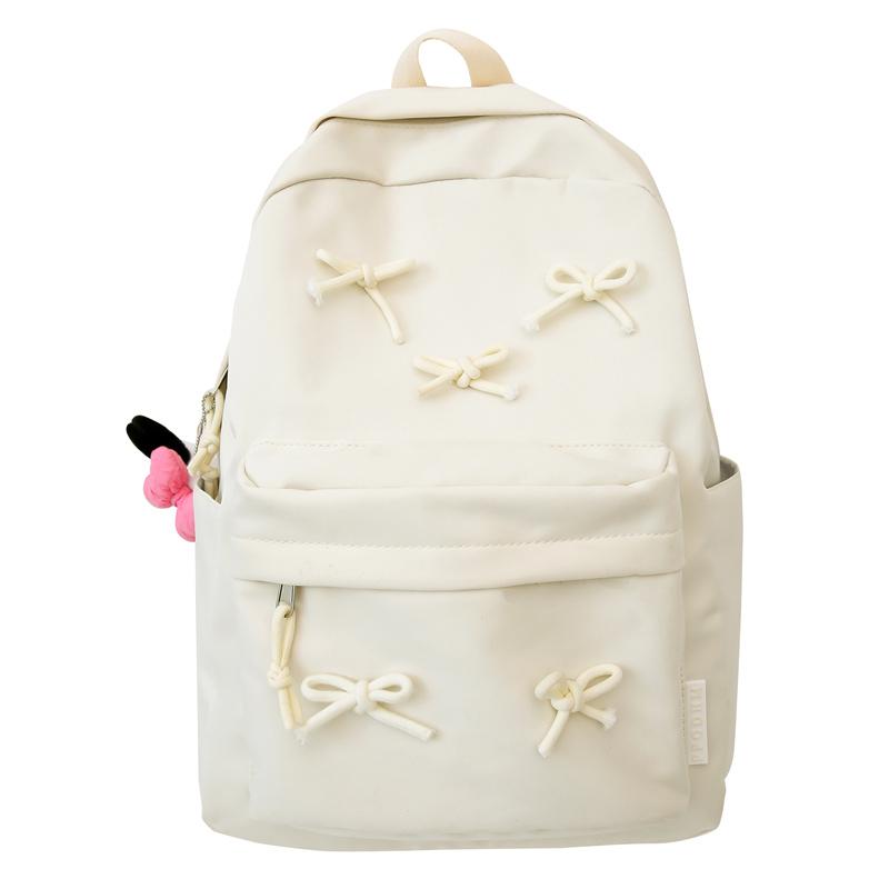 Студенческая сумка большой емкости, однотонный женский рюкзак с бантом для девочек, компьютерная сумка бежевый
