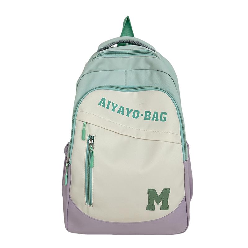 Студенческая школьная сумка, женский рюкзак большой емкости, детский рюкзак с цветными блоками Small зелёный