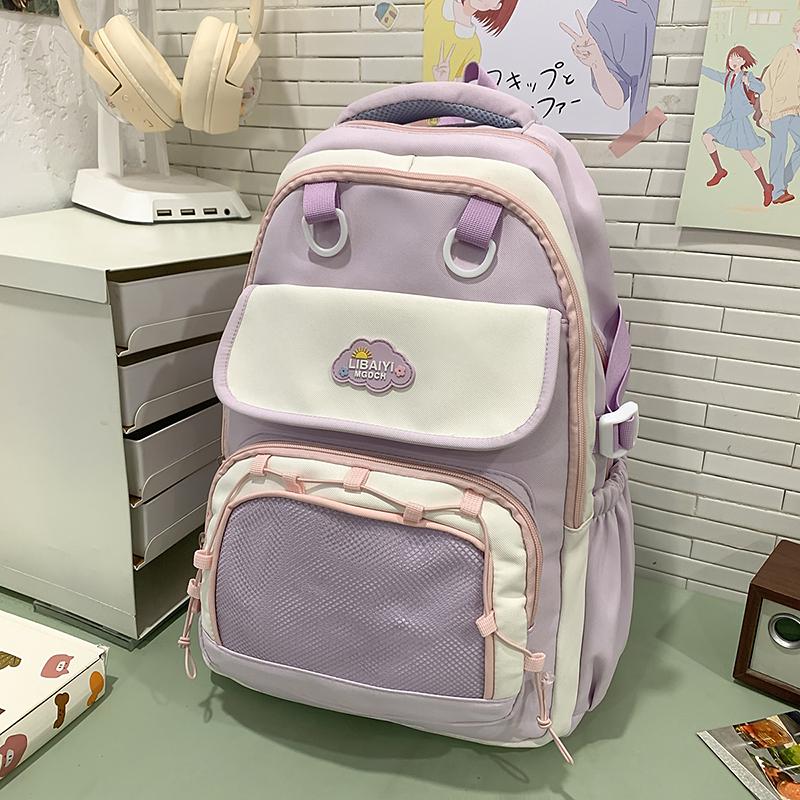 Студенческий рюкзак в стиле колледжа, цветной блок, для девочки, многокарманный, большой вместимости фиолетовый