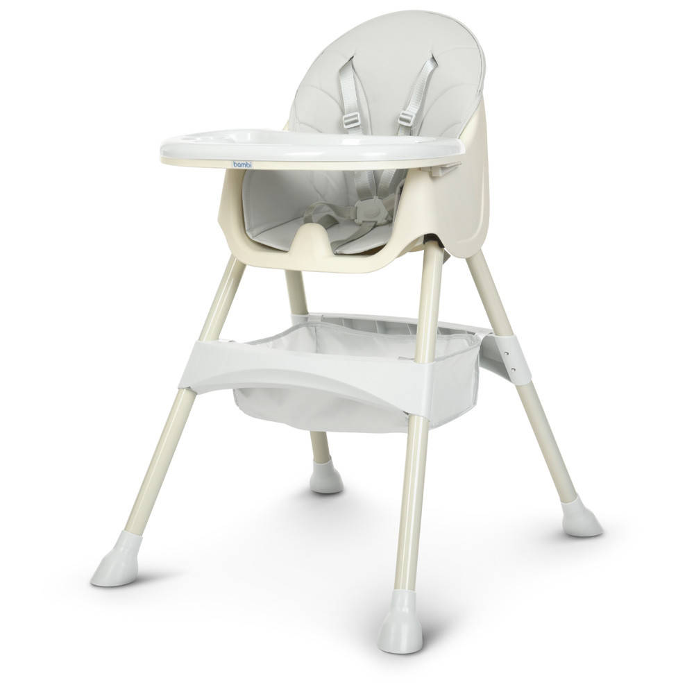 Стульчик для кормления Bambi с корзиной для игрушек, съемная столещница с вторым подносом ледяной серый
