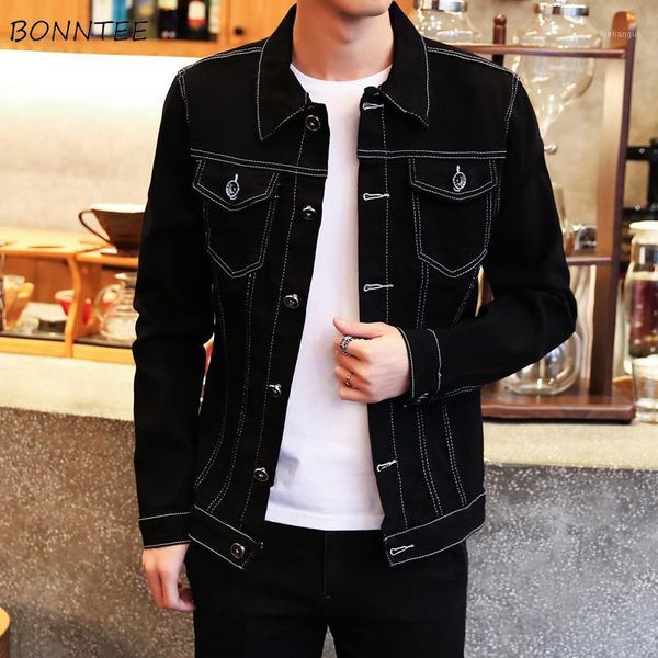 jackets men solid turn-down collar ulzzang mens single breasted denim jacket and coats males fashion clothes chic1, Black;brown