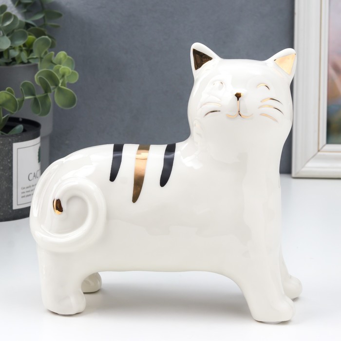 Сувенир керамика "Спящая кошка с тремя полосками, стоит" белый 17,8х7,5х18 см