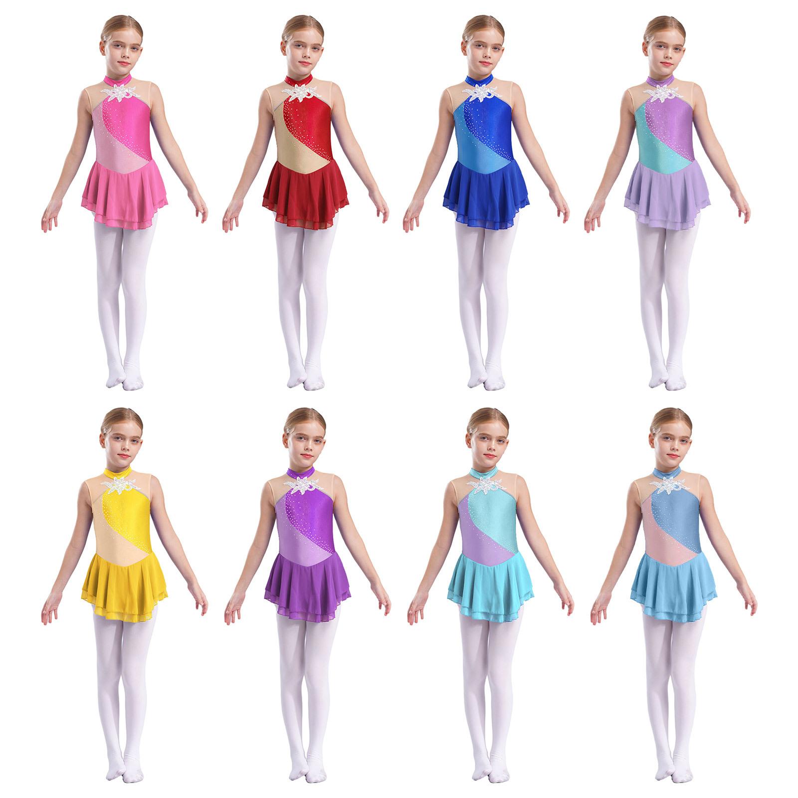Сукня для фігурного катання зі стразами та паєтками для дівчаток, дитяча балетна танцювальна сукня, дитяча гімнастична сукня для ліричного танцю, костюми 5-6 Years світло-синій колір