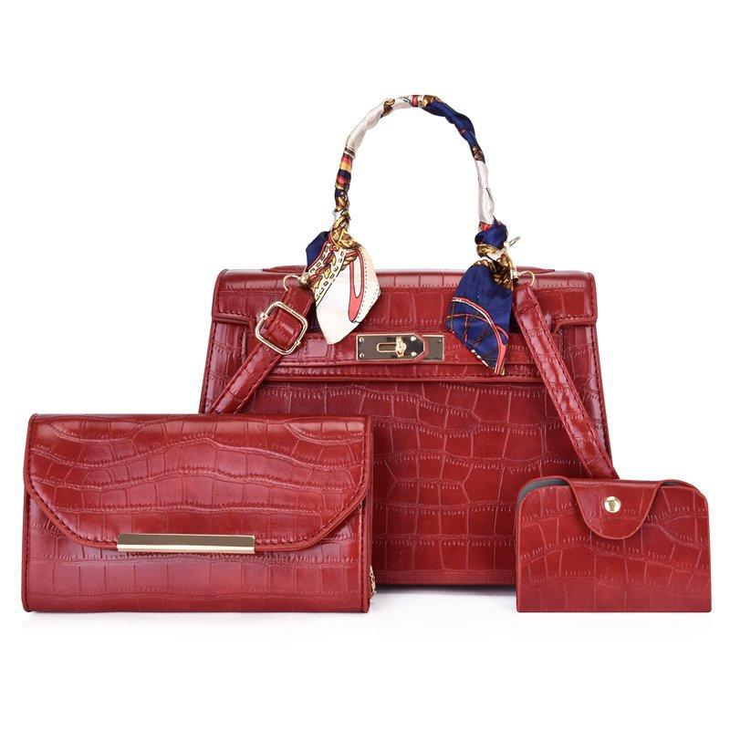 Сумка Женская Новая Мода Конфетный Цвет Ручная Женская Сумка Узор Крокодила Ромб Шелковый Платок Замок Сумка на Плечо Кроссбоди Женская Сумка красный