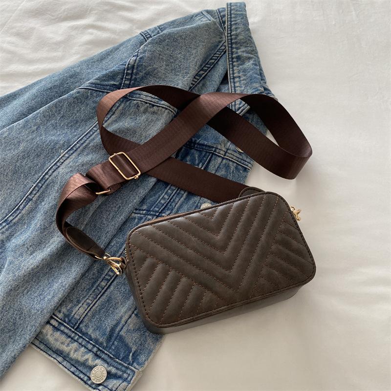 Сумка Женская 2025 Высокая Ценность Однотонная Широкий Плечевой Ремень Сумка Через Плечо Темпераментная Простая Маленькая Квадратная Сумка Женская