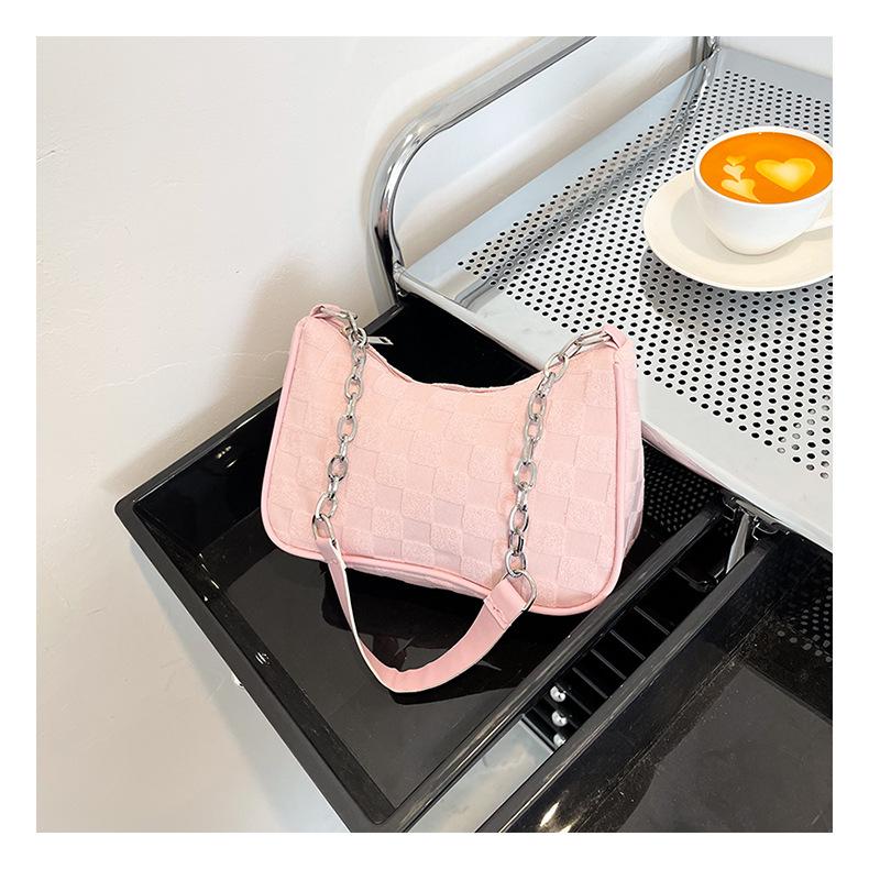 Сумка Женская 2025 Осень Новая Мода Холщовая Плюшевая Клетчатая Сумка Под Мышку Женская Цепочка На Плечо розовый
