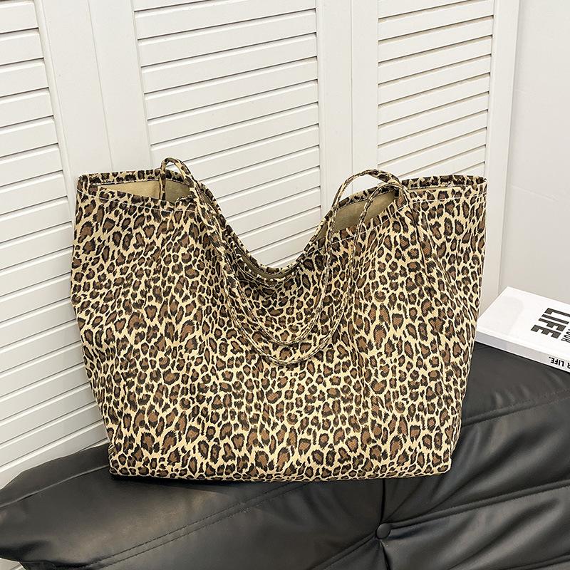 Сумка Новинка 2024 года, сумка через плечо с леопардовым принтом, сумка для покупок в стиле корейского стиля, большая вместимость, женская сумка-тоут Tide цветной печати леопарда