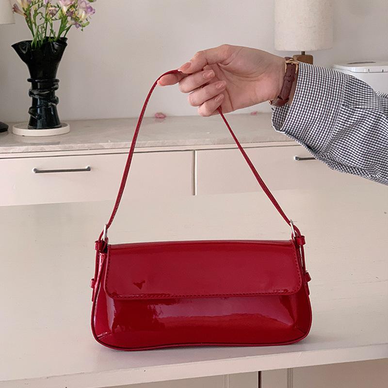 Сумка-багет из лакированной кожи с креплением под мышкой, весна/лето, шикарная, простая, для поездок на работу красный