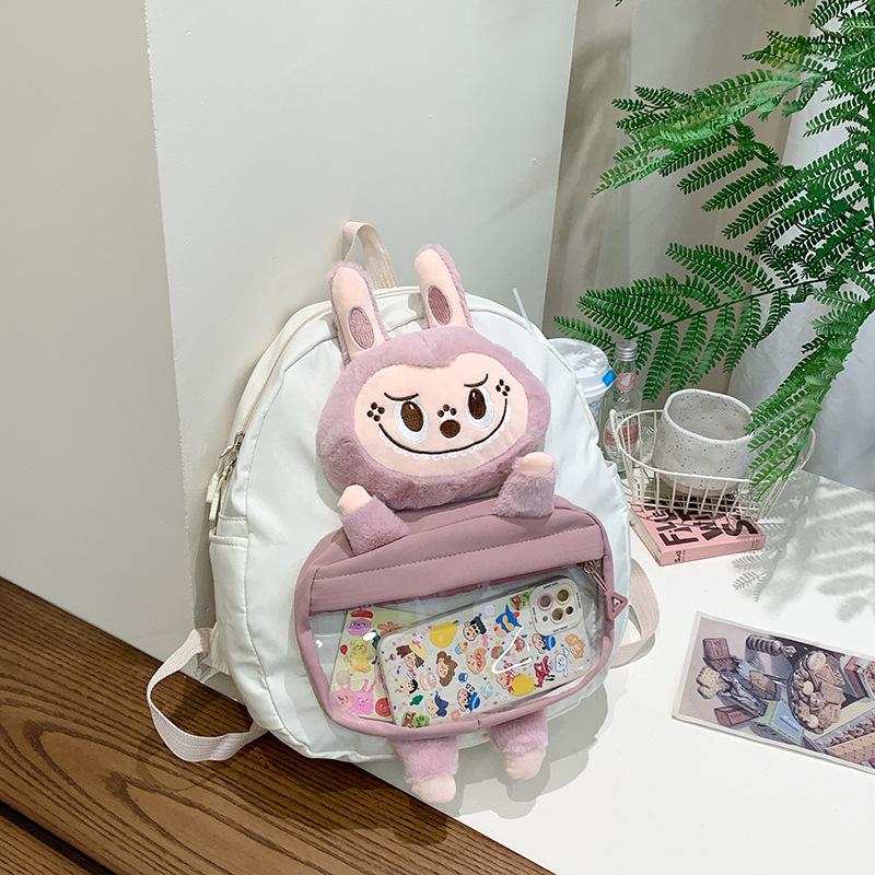 Сумка-багет 2025 новая матовая с пузырьками большая вместимость на плечо женская сумка плюшевая кукла рюкзак милый мультяшный школьный рюкзак белый
