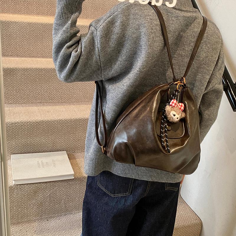 Сумка большой вместимости Женская высококлассная сумка-тоут для поездок на работу Двойная плечевая Одноплечевая Кроссбоди Рюкзак no pendant темно-коричневого