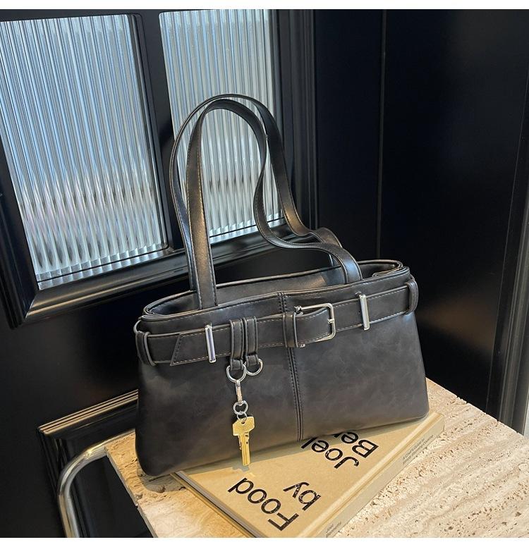 Сумка большой вместимости женская осенне-зимняя ретро универсальная новая повседневная на плечо подмышку нишевая сумка чёрный