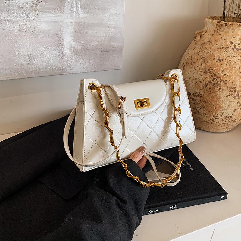 Сумка большой вместимости женская осенне-зимняя ретро 2025 новая универсальная на плечо кроссбоди ромбовидная цепочка подмышечная сумка для поездок на работу белый