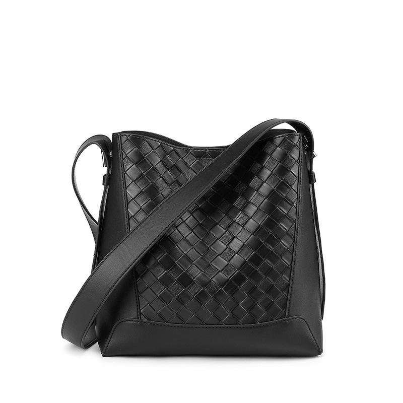 Сумка-ведро, Женская плетеная сумка большой вместимости, Осенняя сумка через плечо на одном плече, Сумка-тоут для通勤 чёрный
