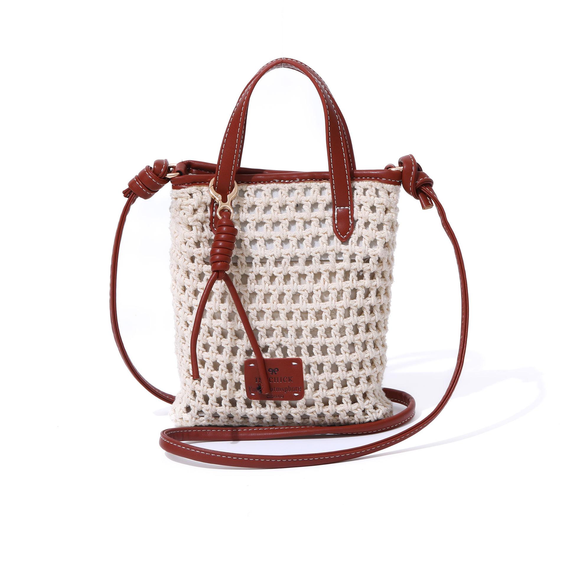 Сумка-ведро женская летняя плетеная маленькая, сумка-мессенджер на плечо, портативная