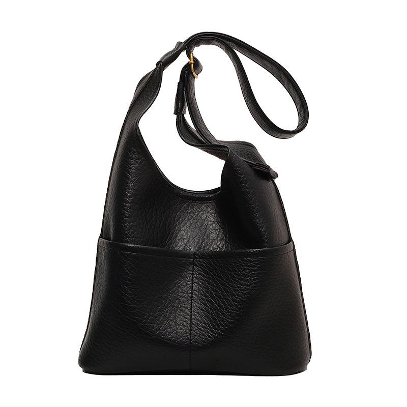 Сумка-ведро из мягкой кожи большой вместимости, женская модная сумка через плечо, сумка-мессенджер для поездок на работу чёрный