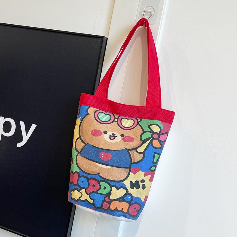 Сумка в стиле масляной живописи, милая сумка-ведро с принтом, на плечо, портативная сумка-тоут, мультяшная студенческая холщовая сумка, сумка