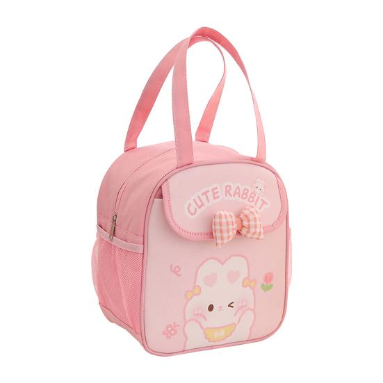 Сумка для ланча Боковые сетчатые карманы Портативная ручка Теплоизоляционное покрытие Застежка-молния Большая вместимость Алюминиевая фольга Сумка для бенто Канцелярские принадлежности розовый