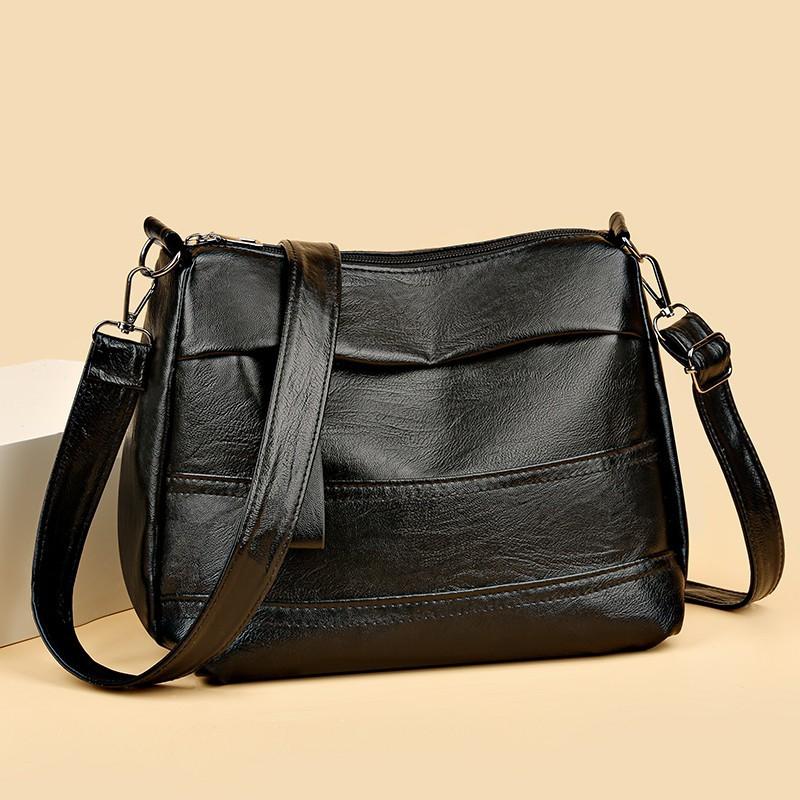 Сумка для мамы, женская кожаная сумка, однотонная, большая вместительная сумка через плечо для среднего возраста чёрный
