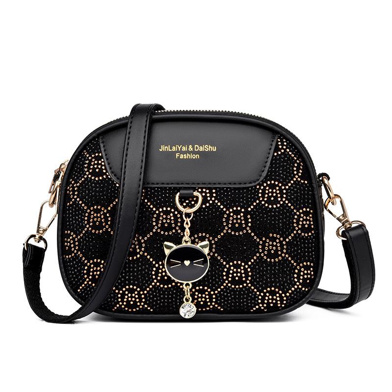 Сумка для мобильного телефона Многослойная из мягкой кожи Модная сумка через плечо Маленькая круглая сумка Мягкая кожа Одноплечевая сумка чёрный