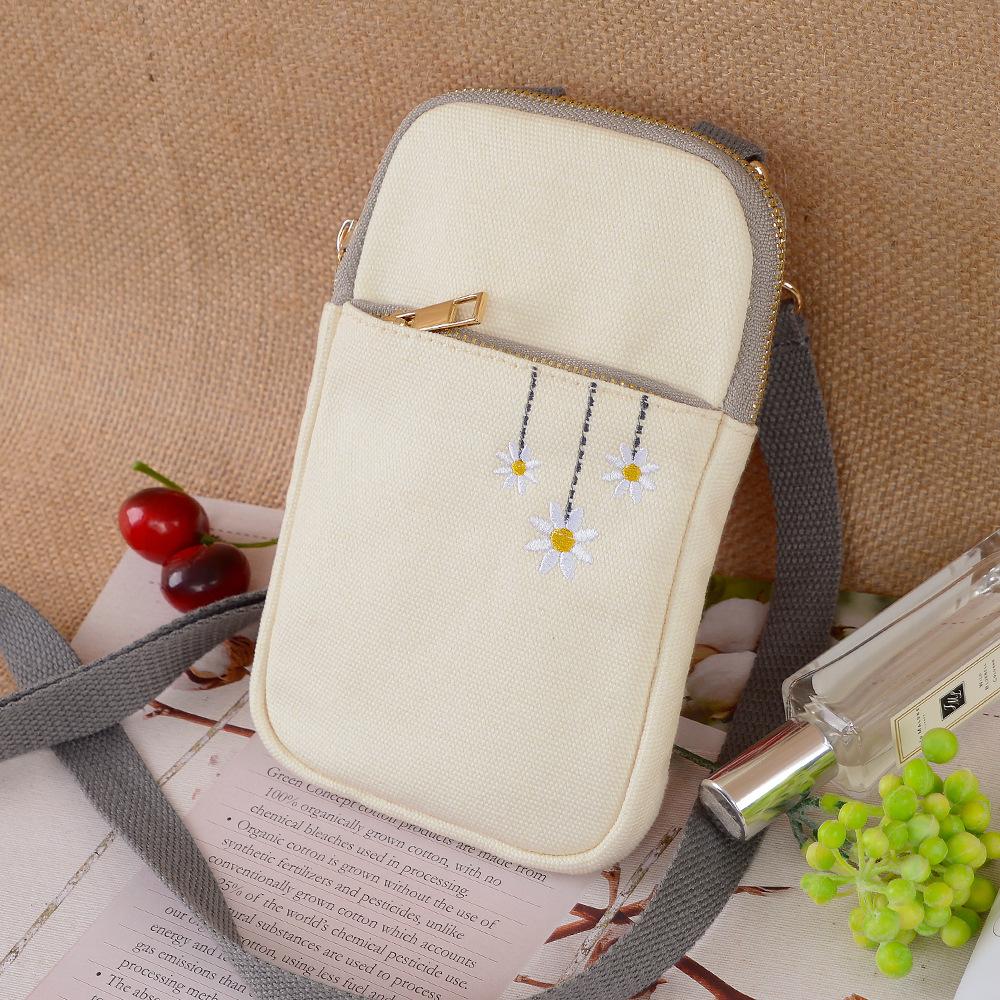 Сумка для мобильного телефона с вышивкой, литературная и свежая мини-сумка, женская новая летняя универсальная сумка через плечо из холста, модная сумка-мессенджер 12*19*15cm серый